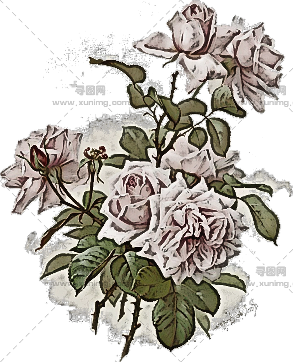 植物艺术风格的白玫瑰PNG免抠图预览图