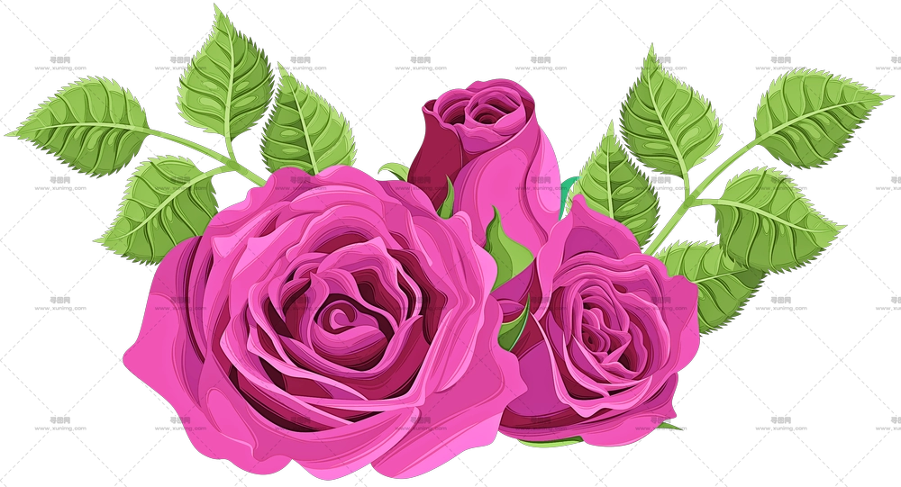 带绿叶的美丽粉玫瑰插画PNG免抠图预览图