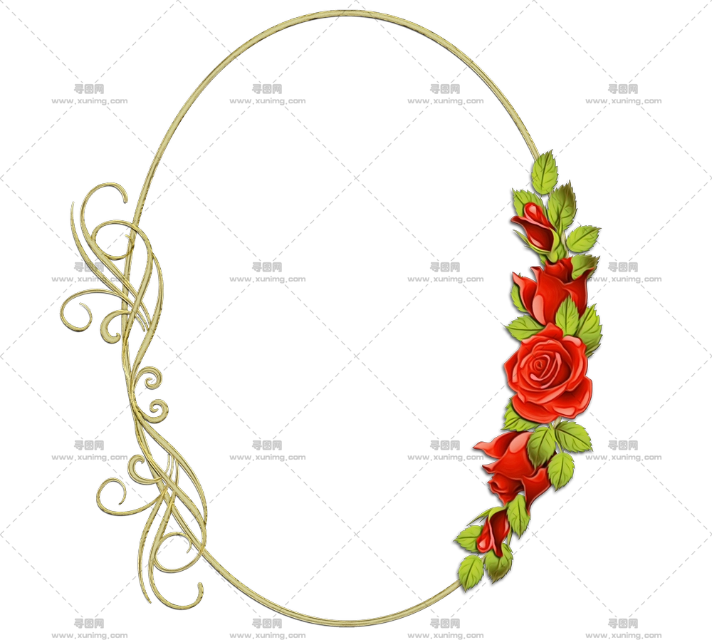 装饰红玫瑰的金框架PNG免抠图预览图