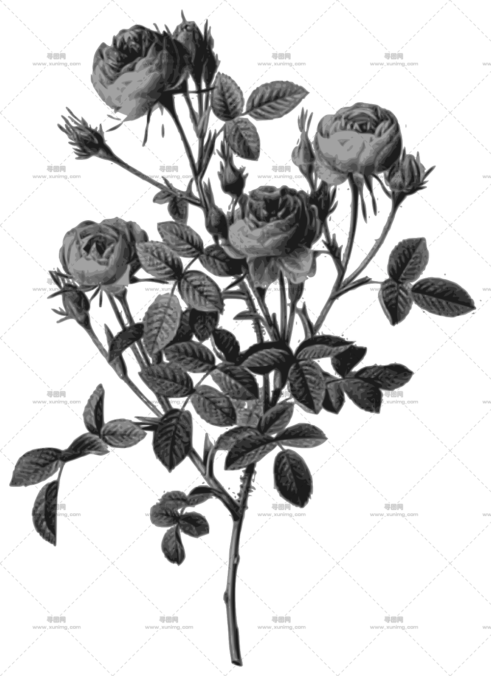美丽粉色玫瑰花枝条插画PNG免抠图