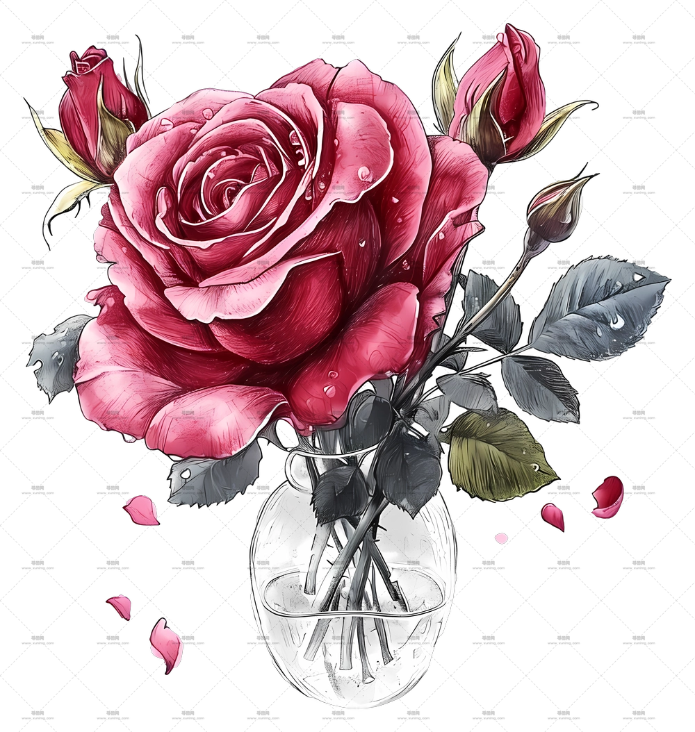鲜艳红色玫瑰花完全盛开PNG免抠图