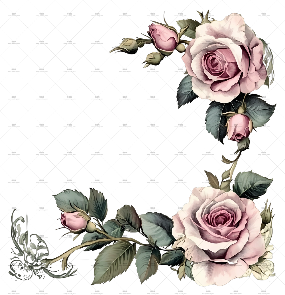 带叶子的粉玫瑰装饰设计PNG免抠图预览图