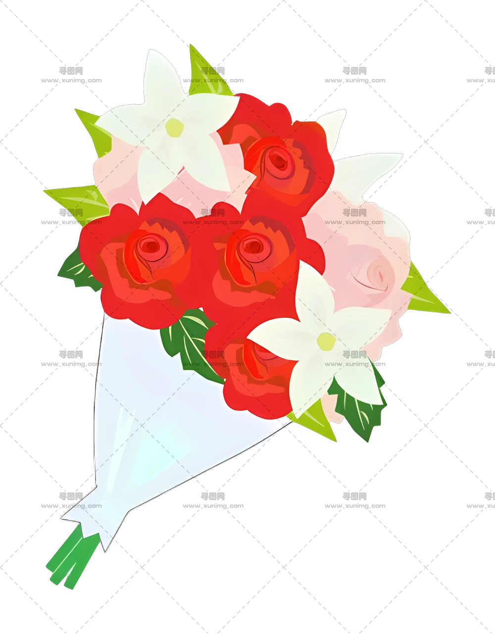 带玫瑰和百合的美丽花卉花束PNG免抠图预览图