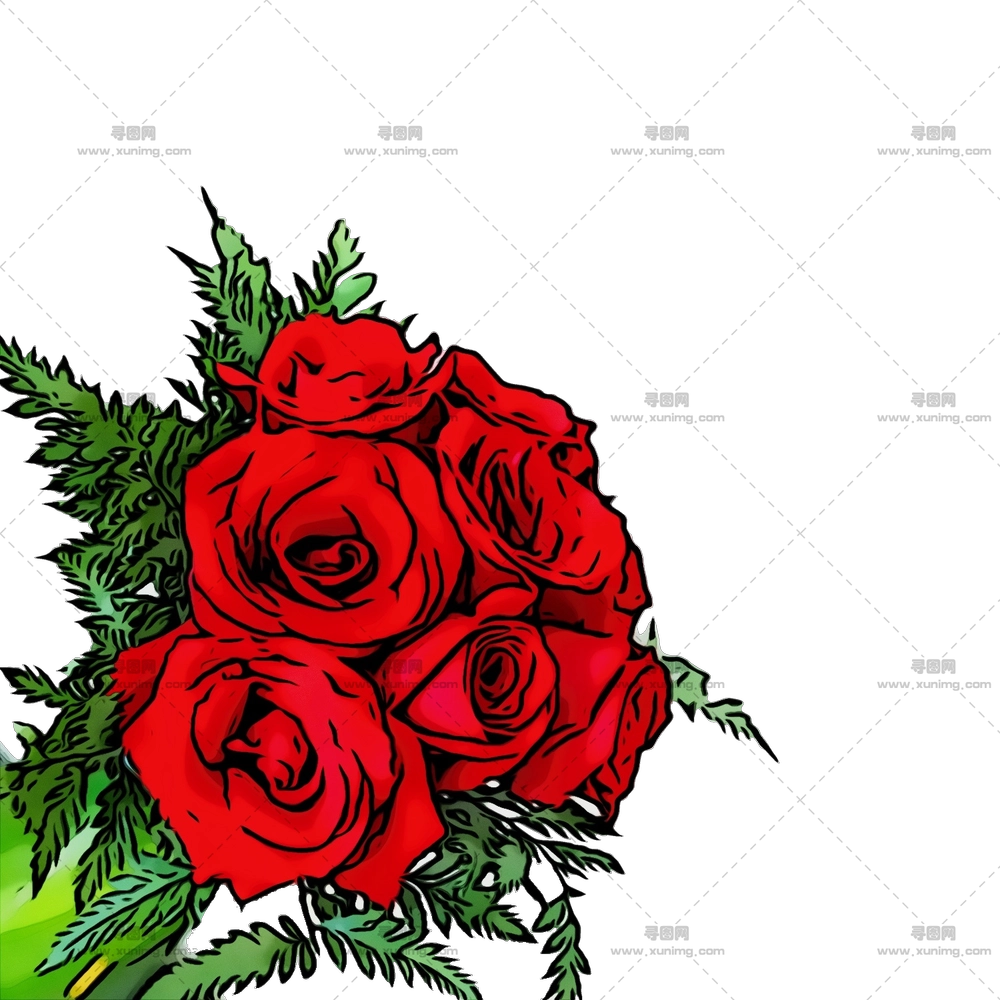 红色玫瑰花朵插画PNG免抠图