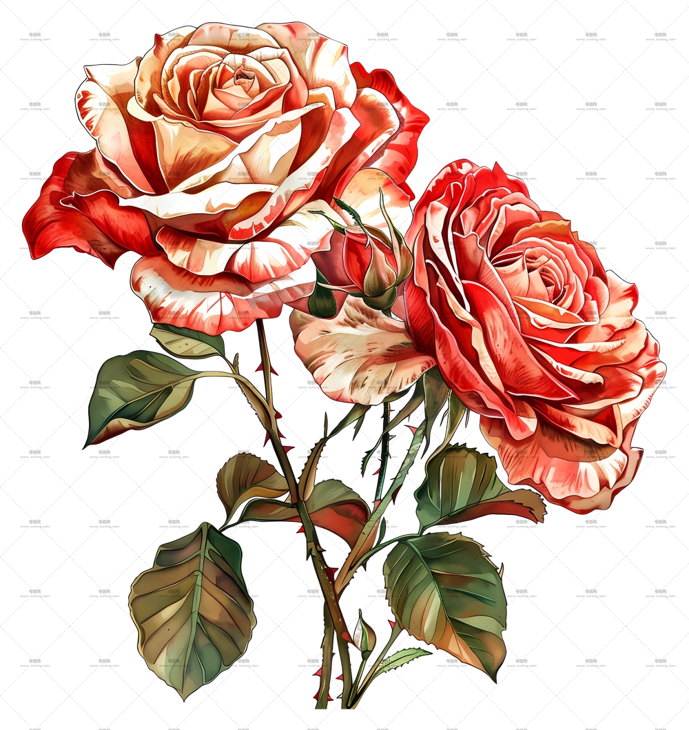 美丽红白玫瑰花束PNG免抠图