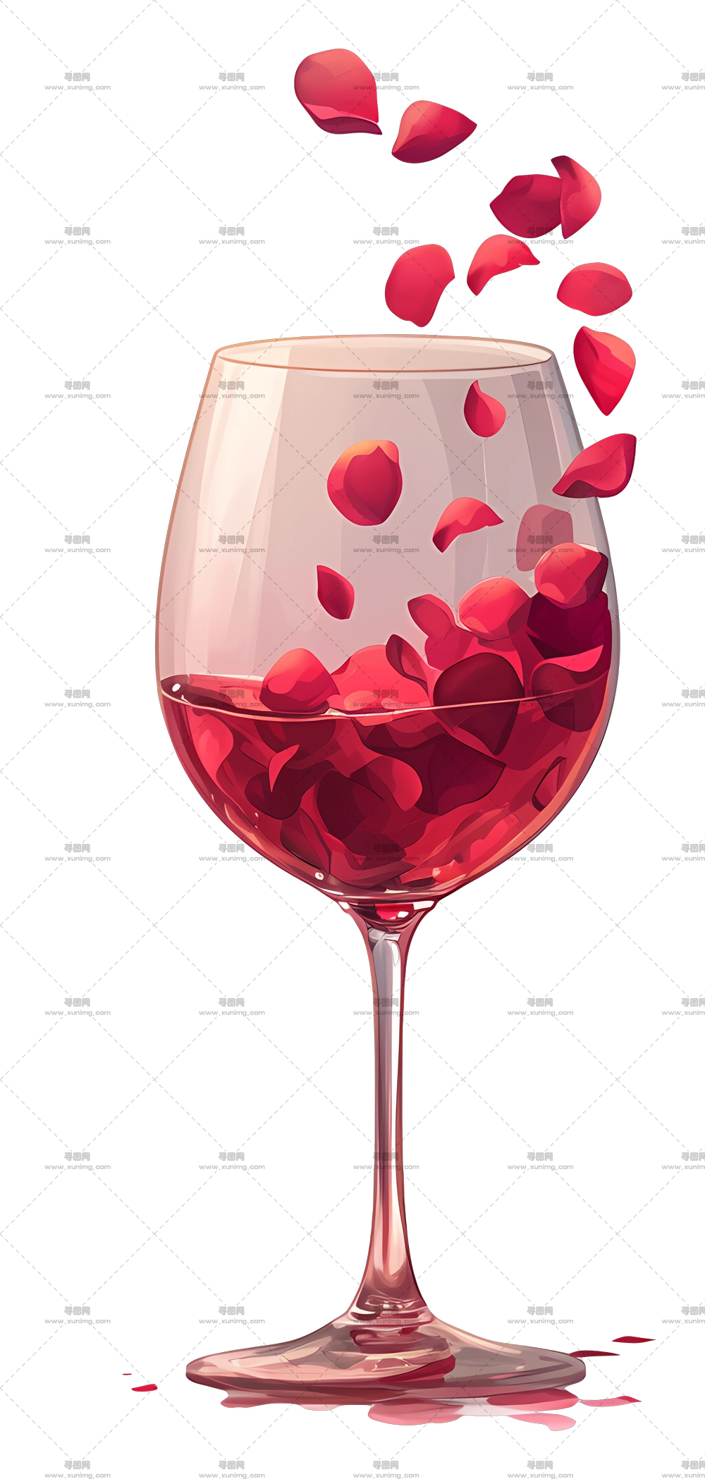 带玫瑰花瓣的酒杯插画PNG免抠图预览图