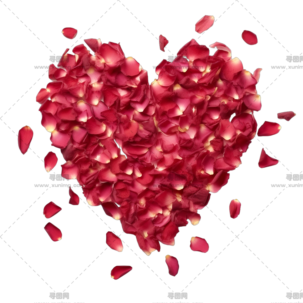 红玫瑰花瓣制成的心形PNG免抠图