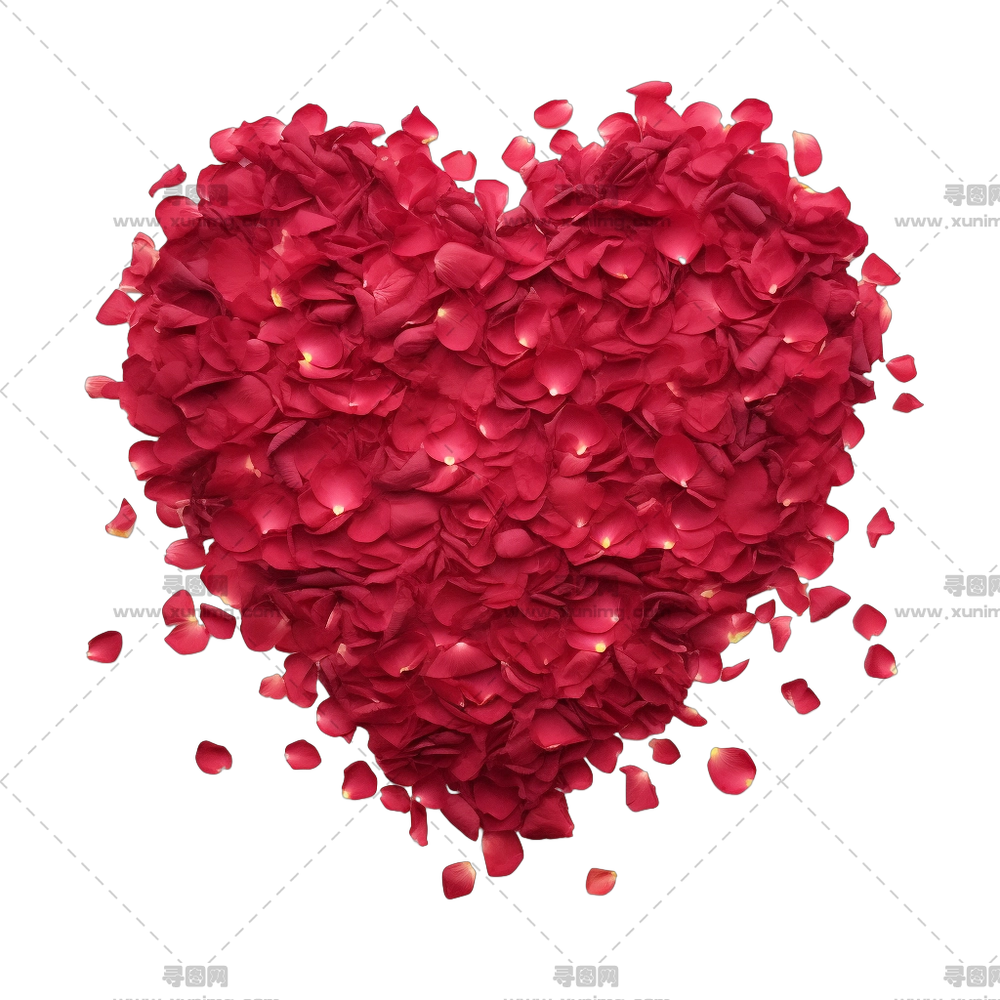 红玫瑰花瓣制成的心形PNG免抠图预览图