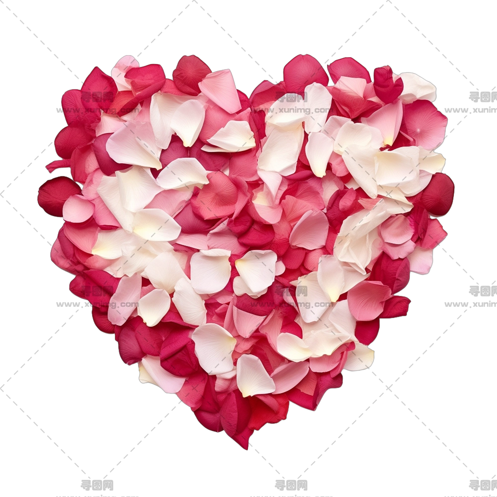 带情人节文字的玫瑰花瓣心形PNG免抠图