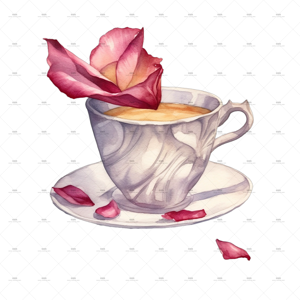咖啡花卉白杯黄色向日葵PNG免抠图