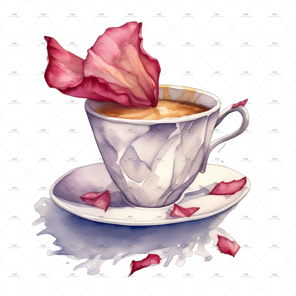 带花瓣的优雅茶插画PNG免抠图预览图