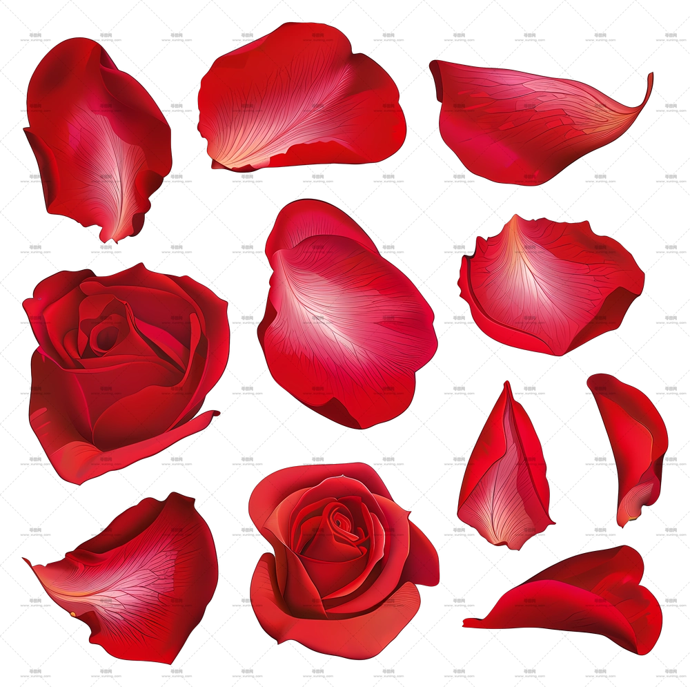 红玫瑰花瓣和花朵特写PNG免抠图预览图