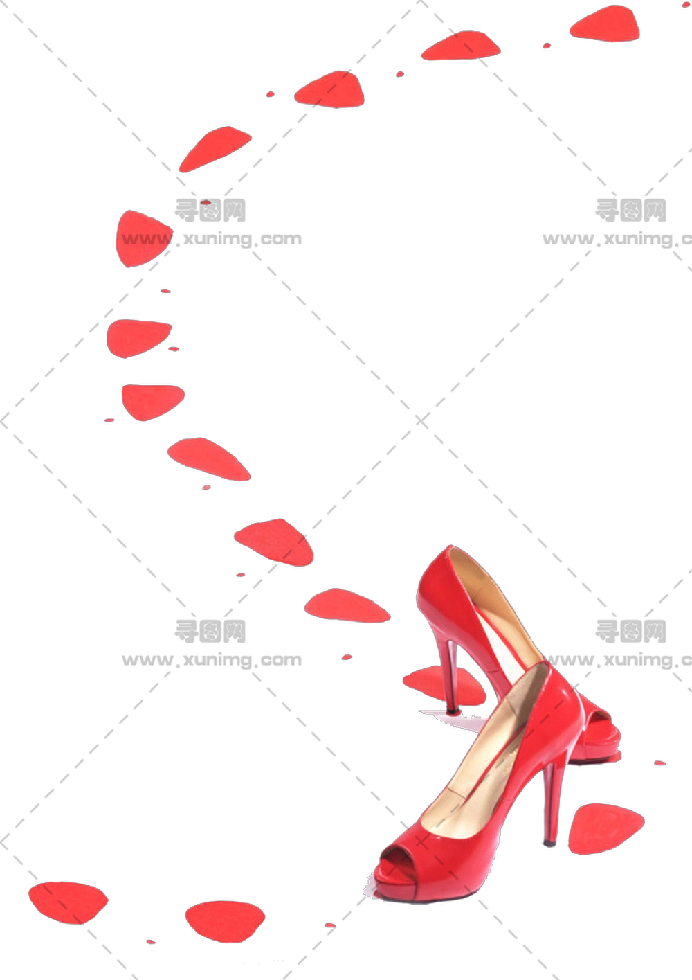 带玫瑰花瓣的红高跟鞋PNG免抠图预览图