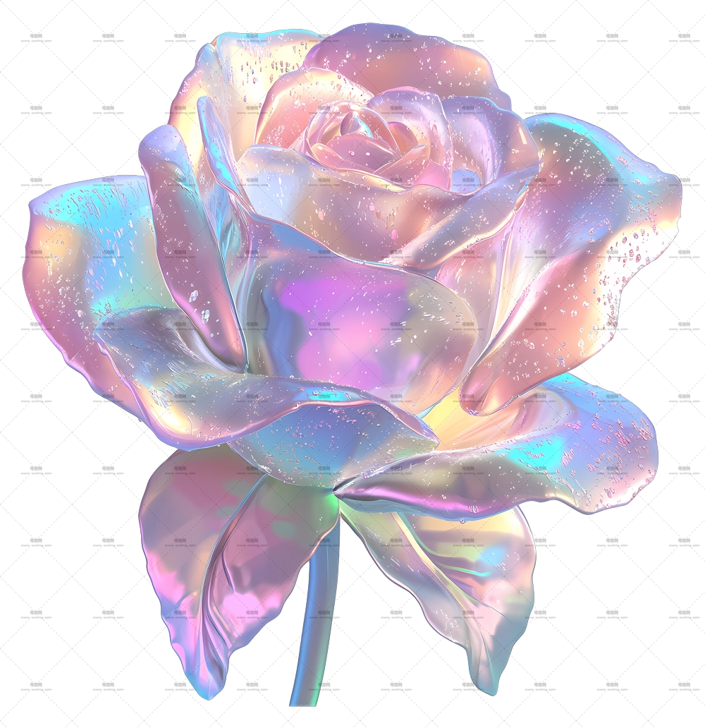带露珠的彩虹玫瑰PNG免抠图预览图