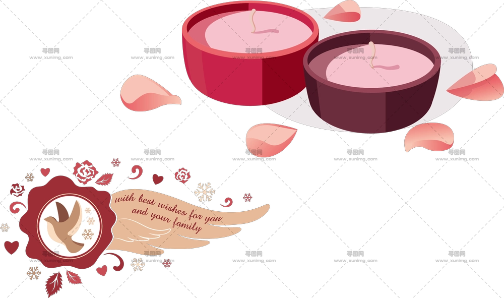 带玫瑰花瓣的浪漫蜡烛PNG免抠图预览图