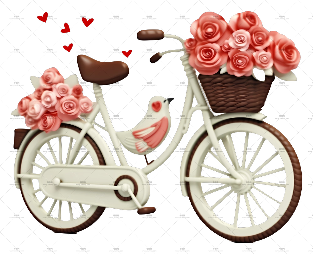 带篮中玫瑰的浪漫自行车PNG免抠图预览图