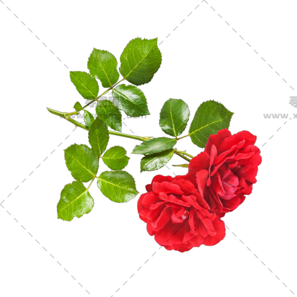 带绿叶的美丽红玫瑰PNG免抠图预览图