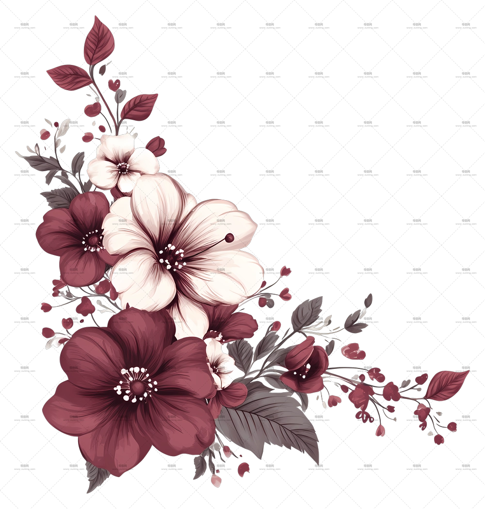 带酒红和奶油花的优雅花卉装饰PNG免抠图预览图