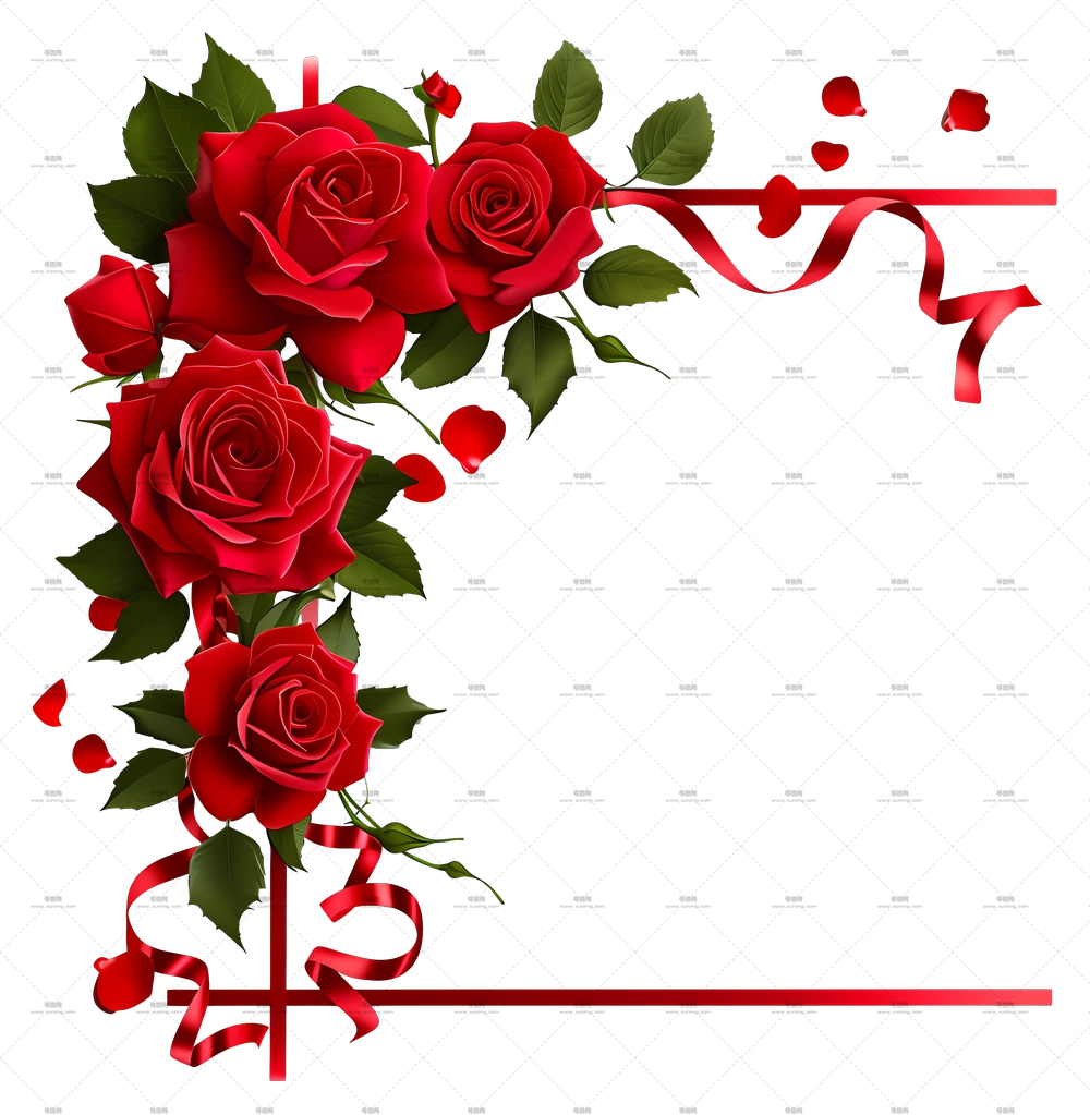 庆祝用红玫瑰花框架PNG免抠图预览图