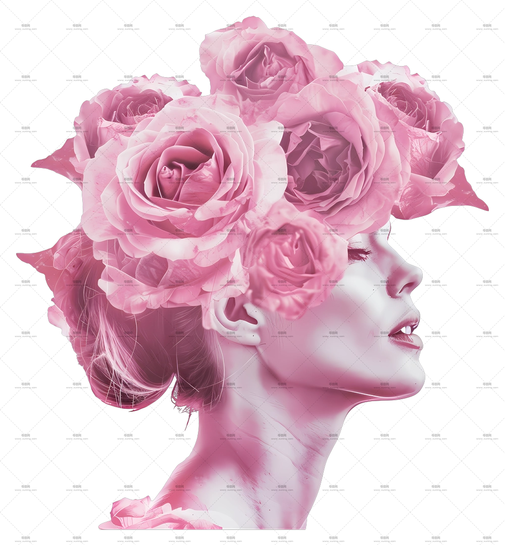 带粉玫瑰的女人插画PNG免抠图预览图