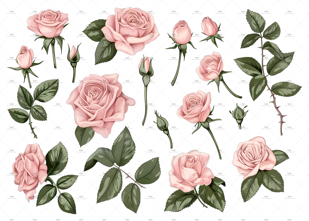 带绿叶的红玫瑰插画PNG免抠图