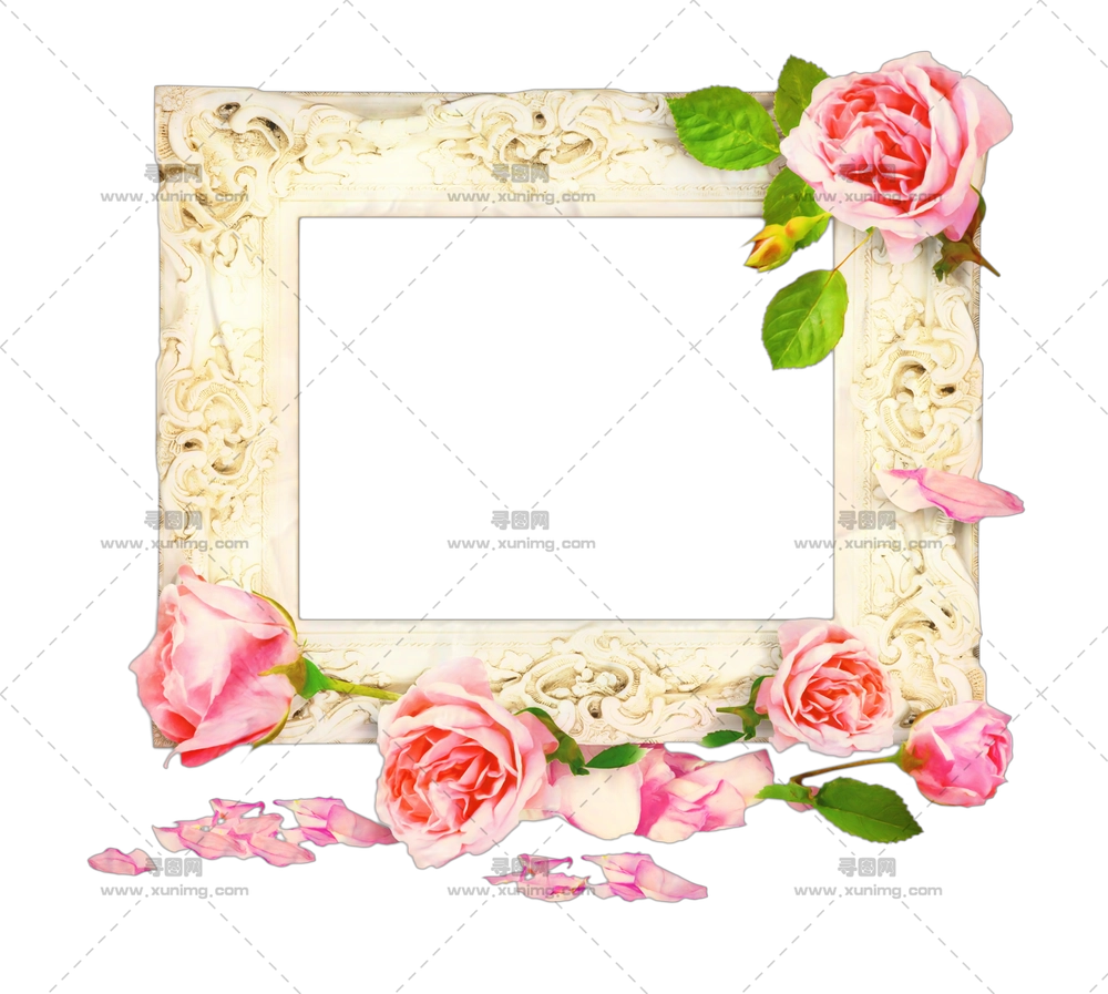装饰粉玫瑰的华丽花卉框架PNG免抠图预览图