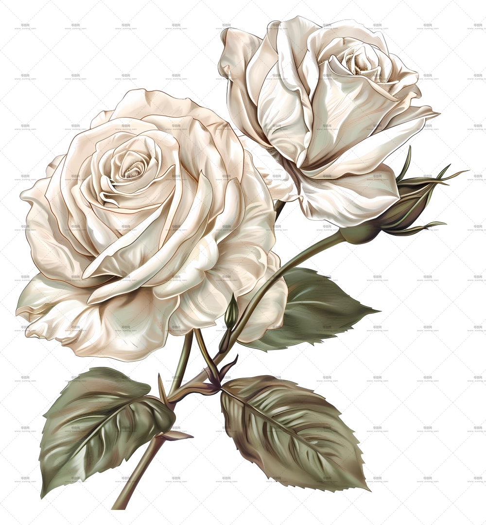 带玫瑰和翅膀的天使雕像插画PNG免抠图