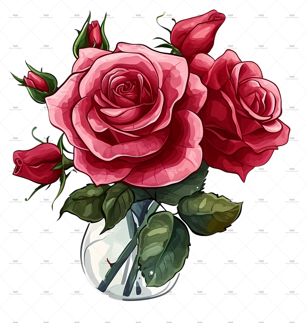 玻璃花瓶中的粉玫瑰PNG免抠图预览图
