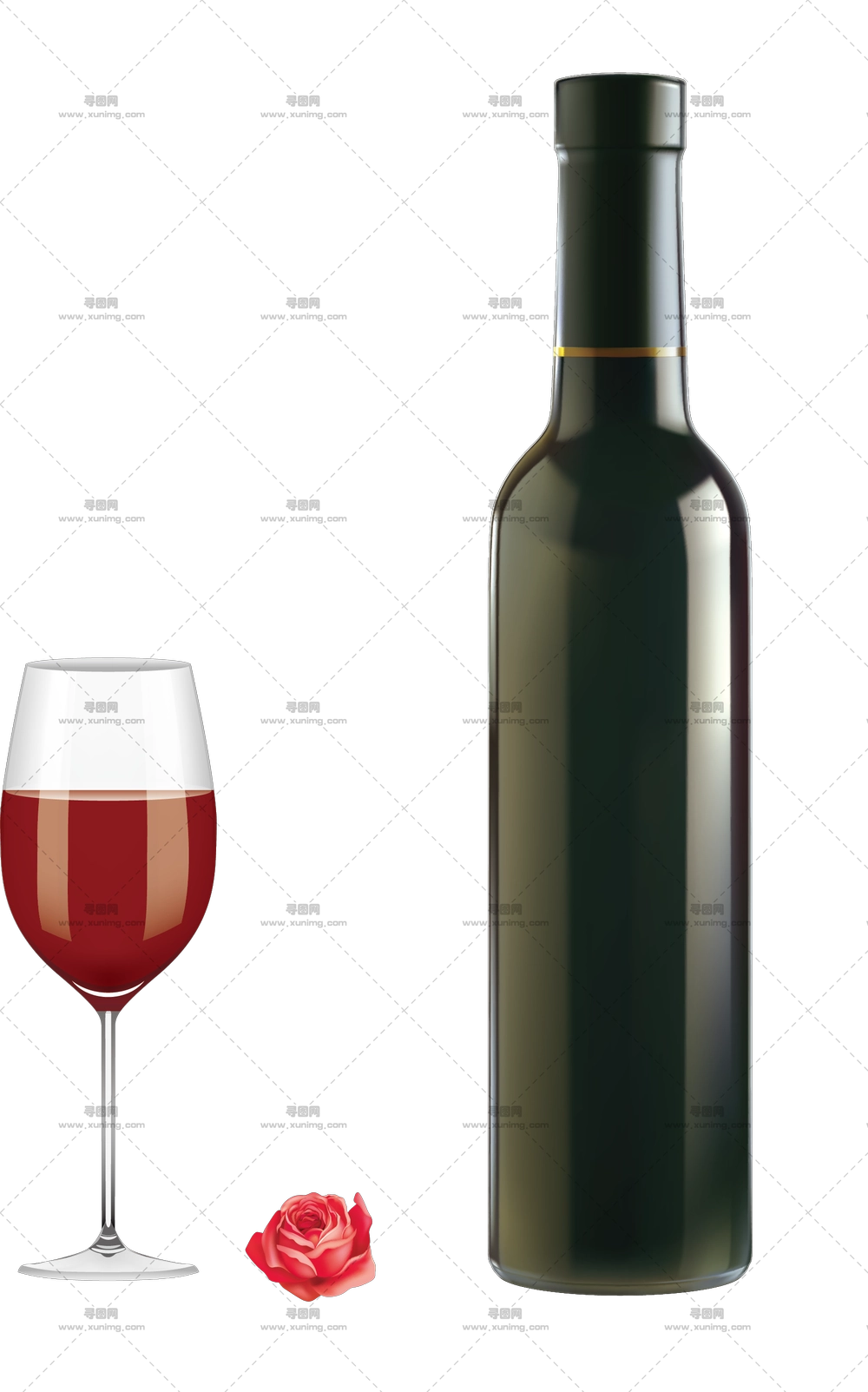 带玫瑰的酒瓶和酒杯PNG免抠图预览图