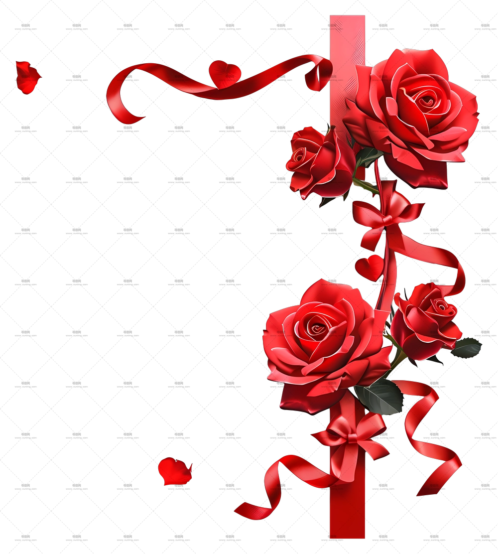 带丝带的浪漫红玫瑰PNG免抠图预览图