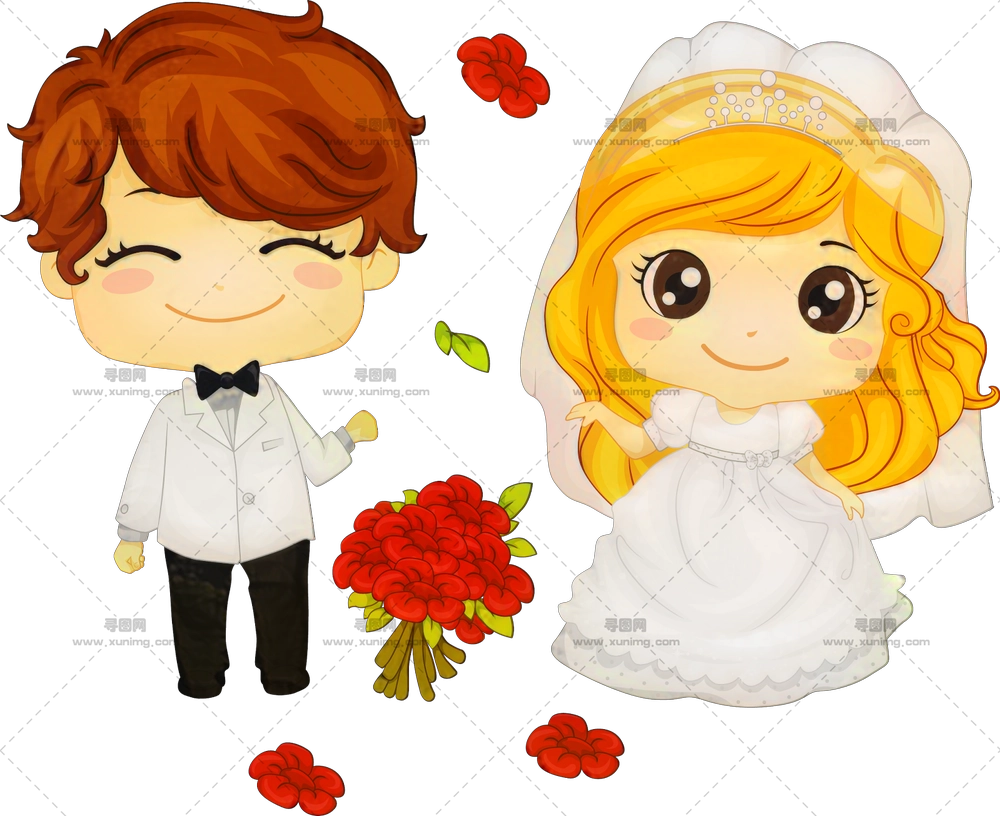 带玫瑰的可爱卡通婚礼情侣PNG免抠图预览图