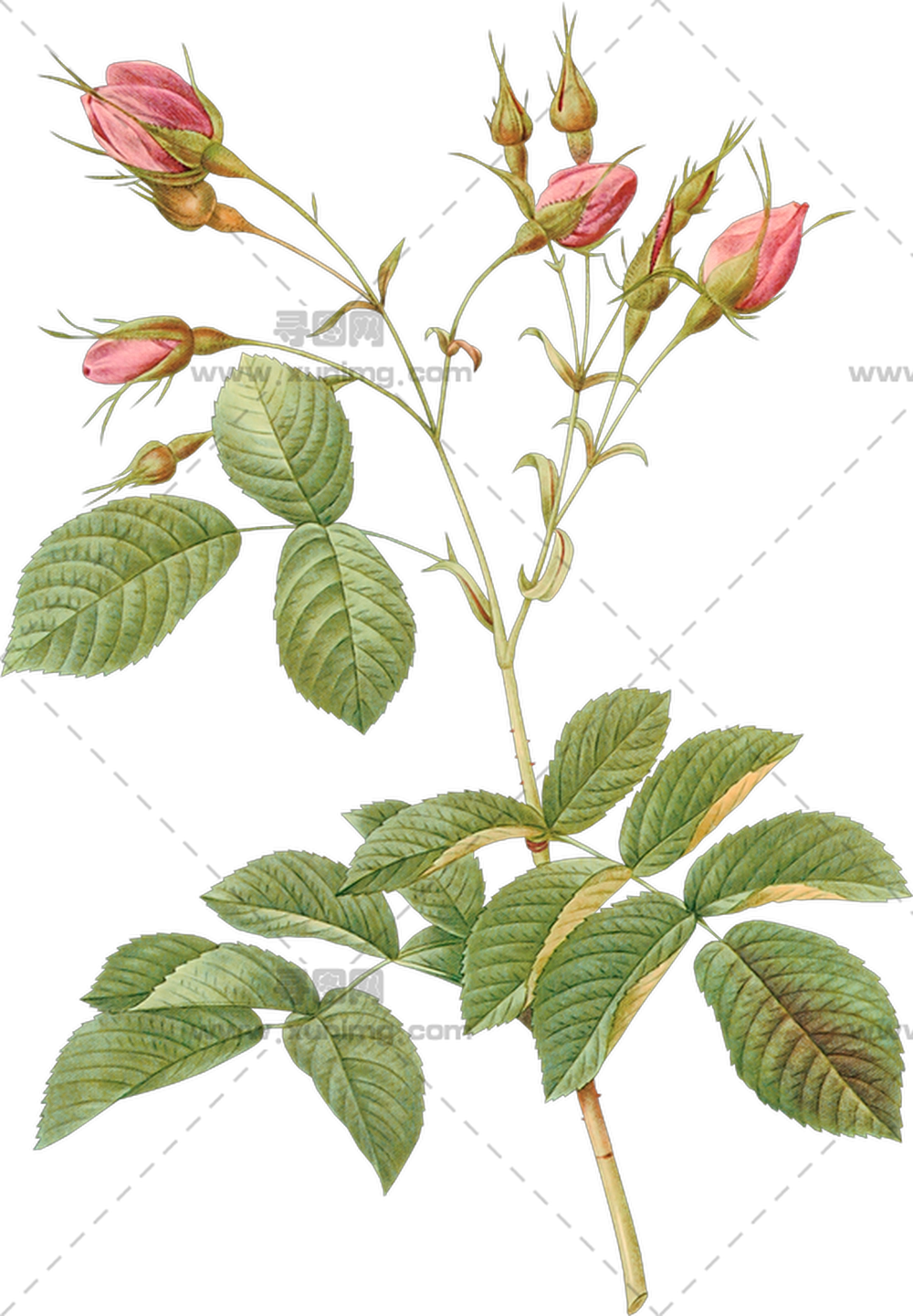 萌芽粉玫瑰植物插画PNG免抠图预览图