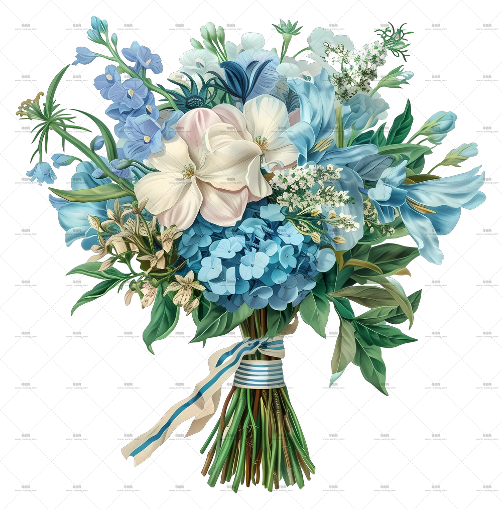 婚礼捧花 – 粉色和蓝色花朵的美丽花束PNG免抠图
