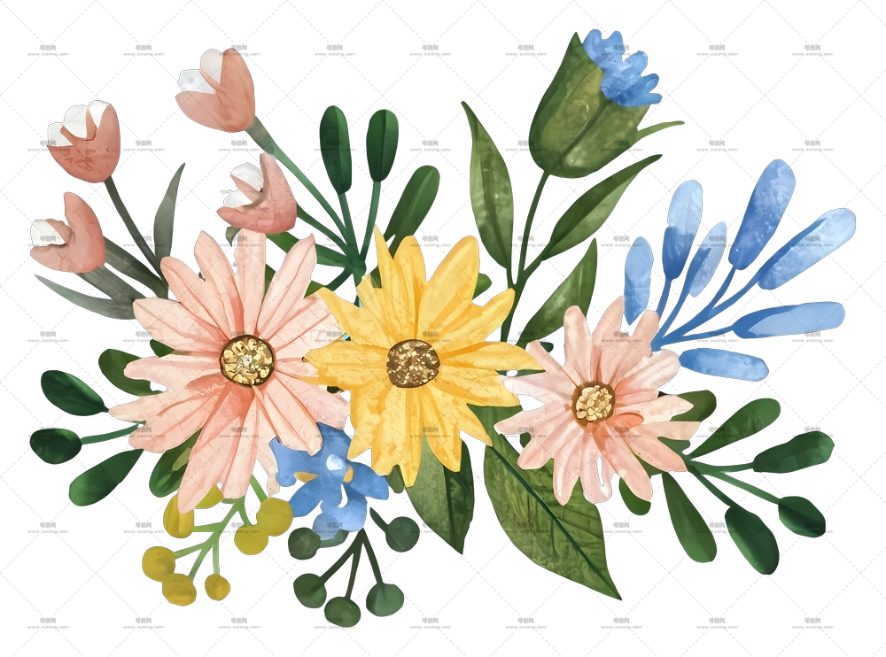 一束鲜花 – 明亮多彩的花束插画PNG免抠图