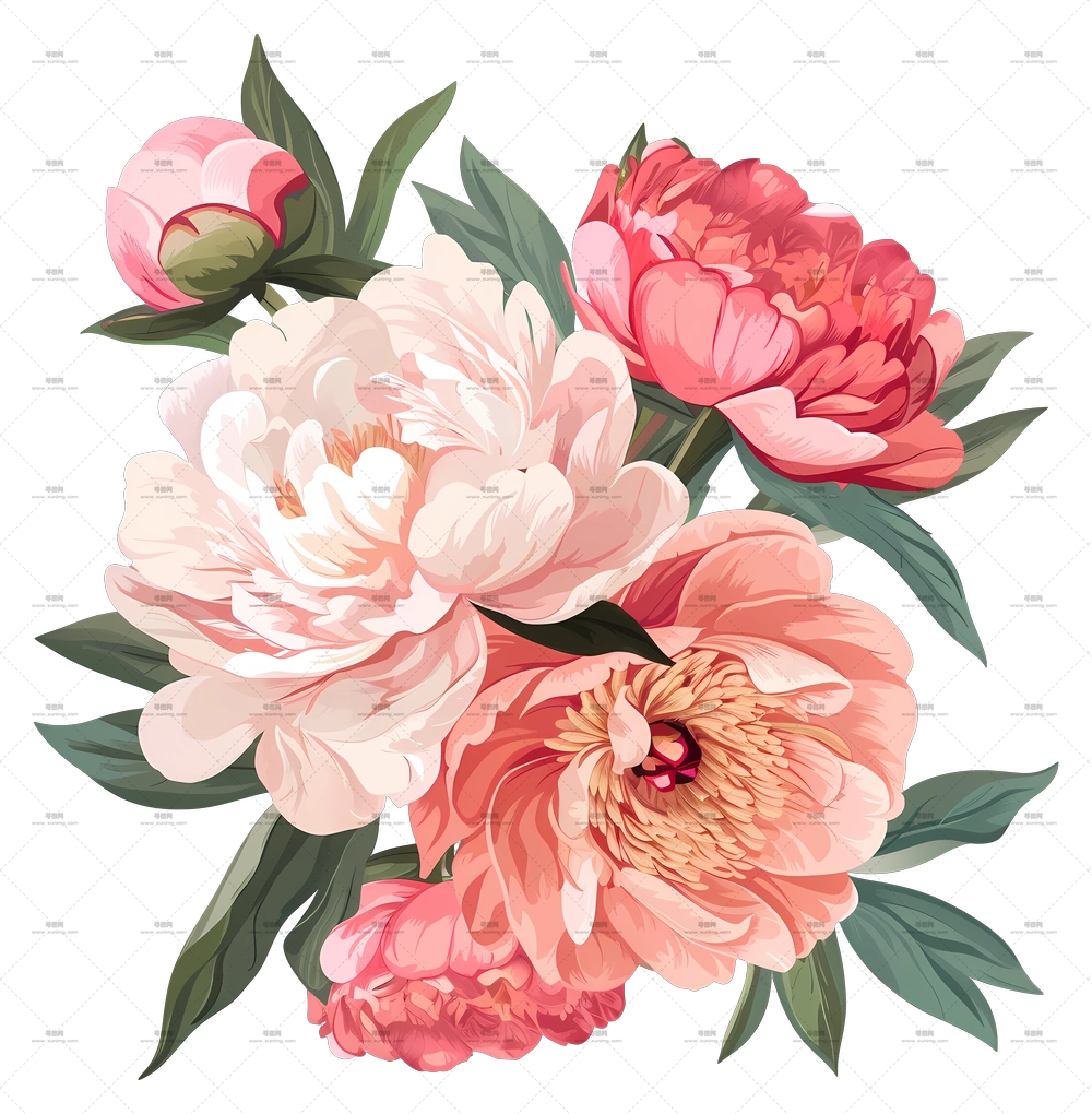 带花瓣美丽粉色玫瑰花插画PNG免抠图