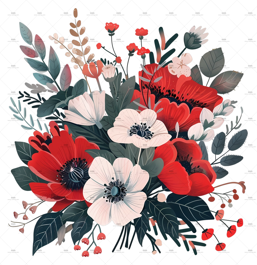 红水彩花PNG免抠图