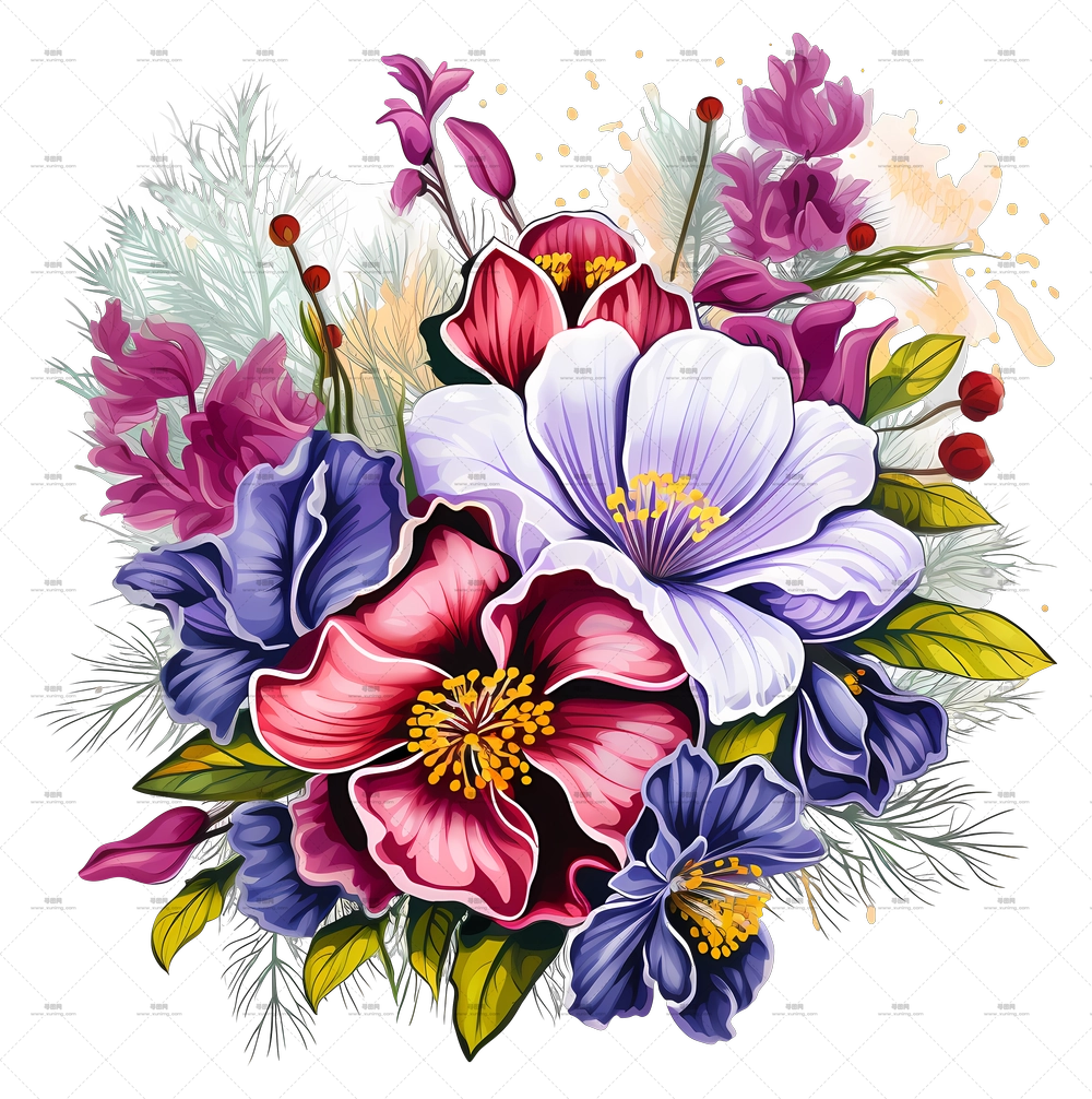 婚礼花 – 带白色玫瑰的优雅花束PNG免抠图