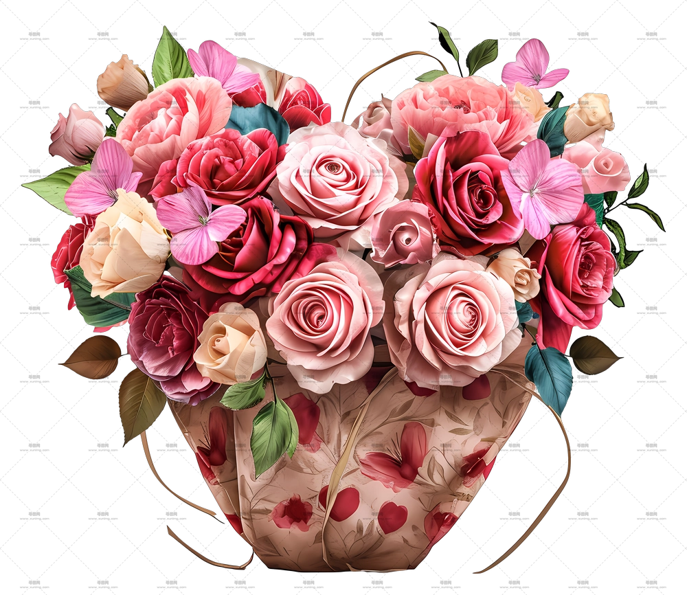 带粉色玫瑰花优雅花卉框架PNG免抠图