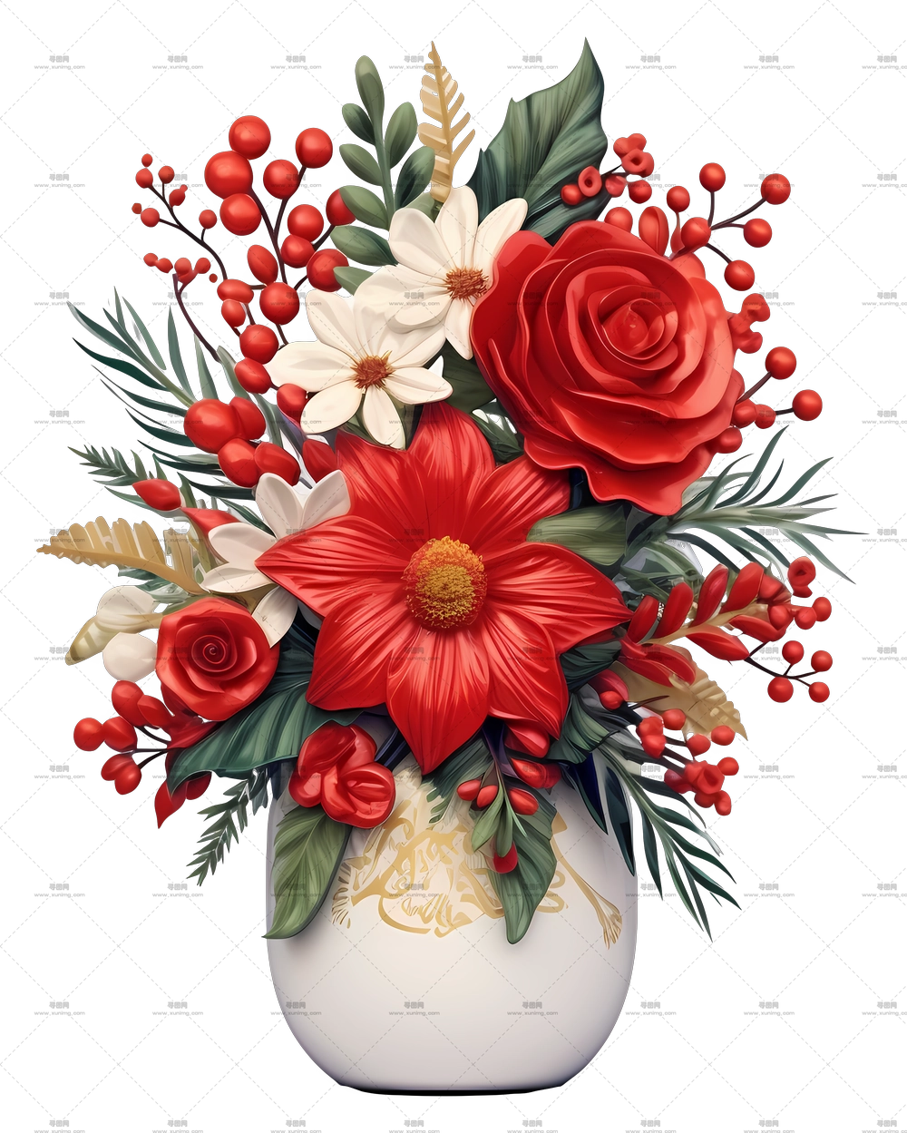 复古花卉摆设 – 精美花卉束摆设PNG免抠图