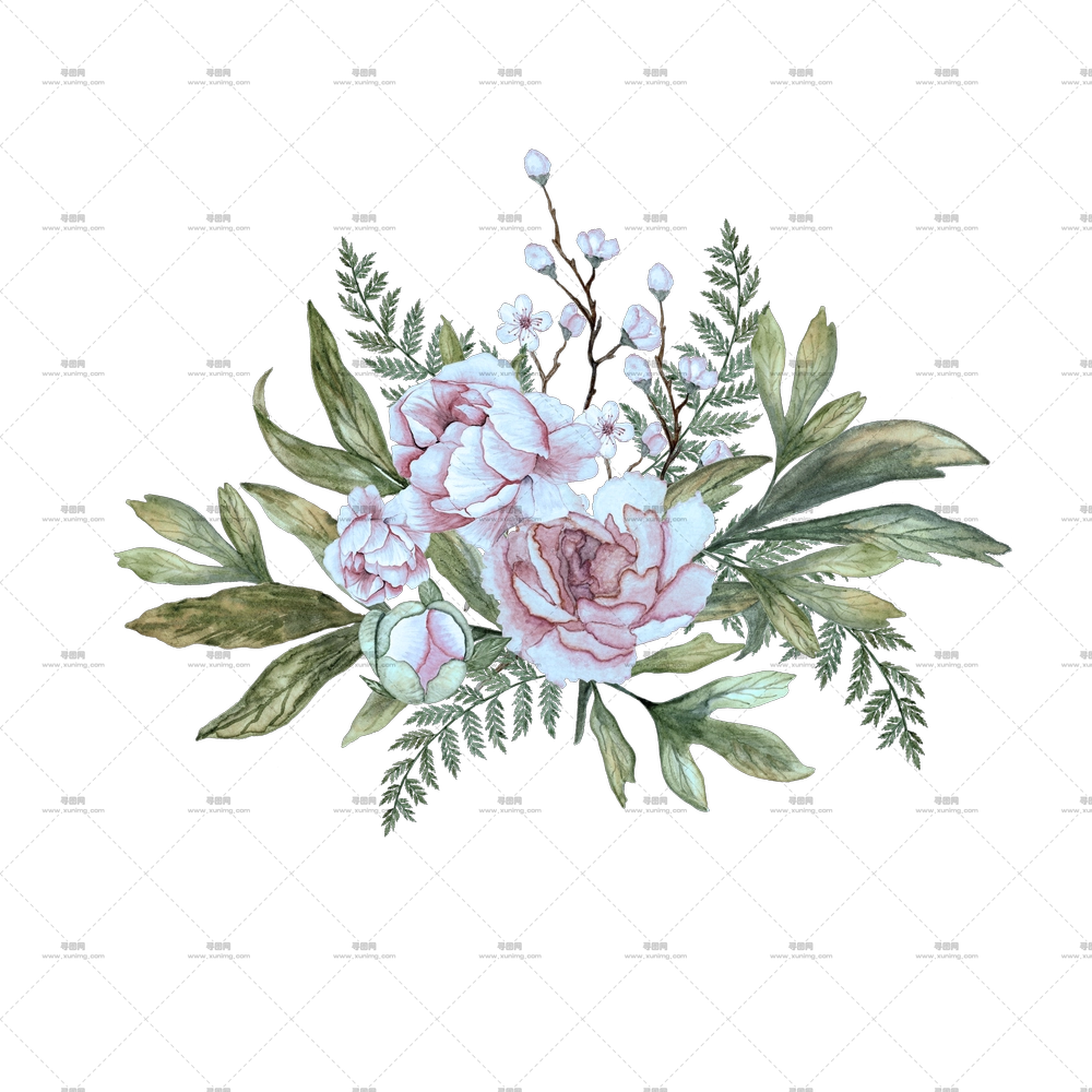紫玫瑰花卉插画PNG免抠图