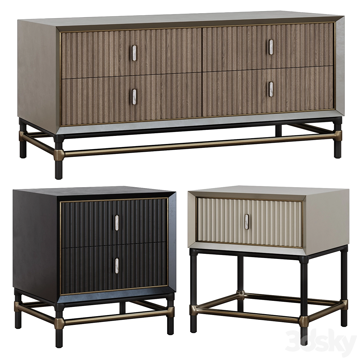 双人床套装3D模型