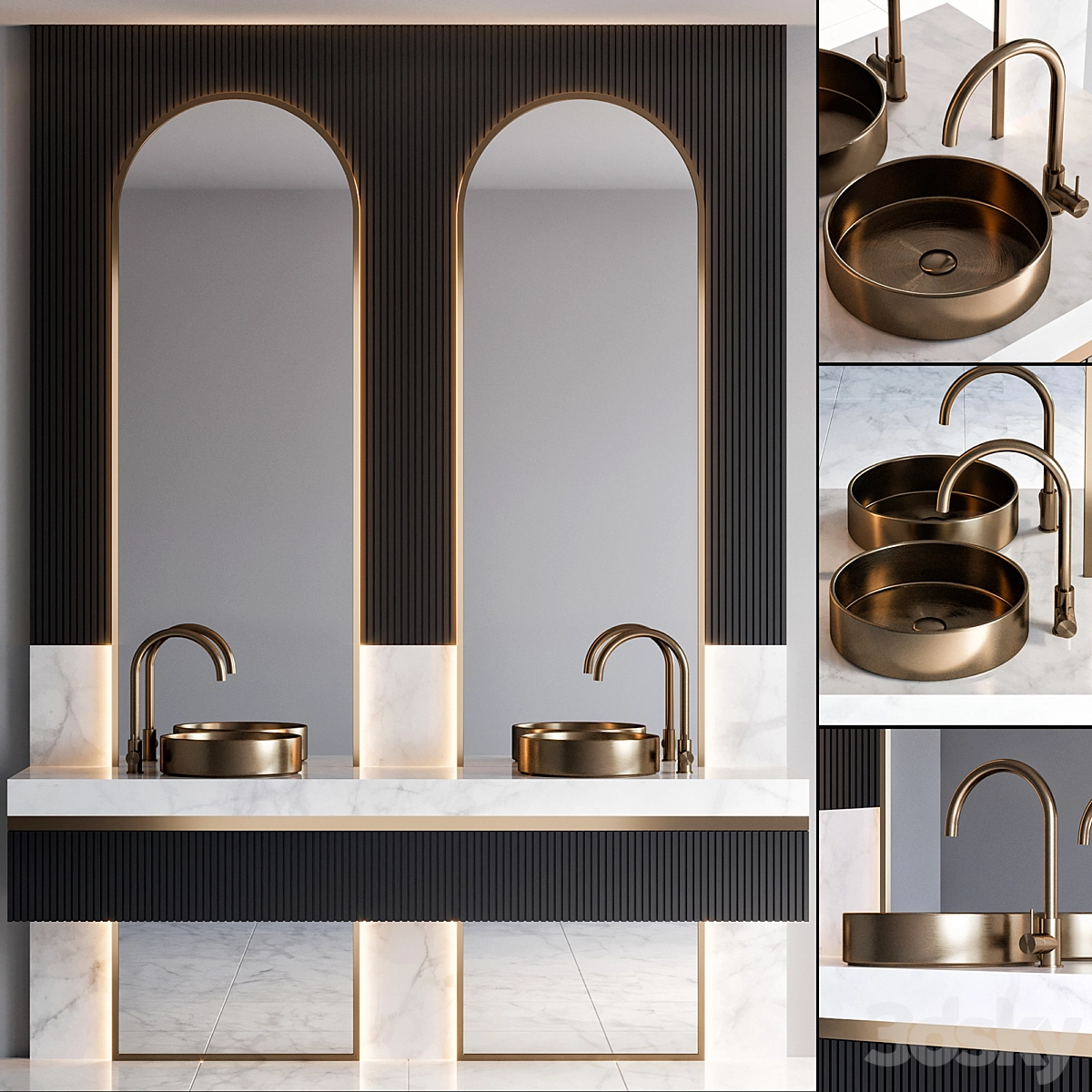 卫生间洗脸池水池马桶毛巾架卫生纸3D模型