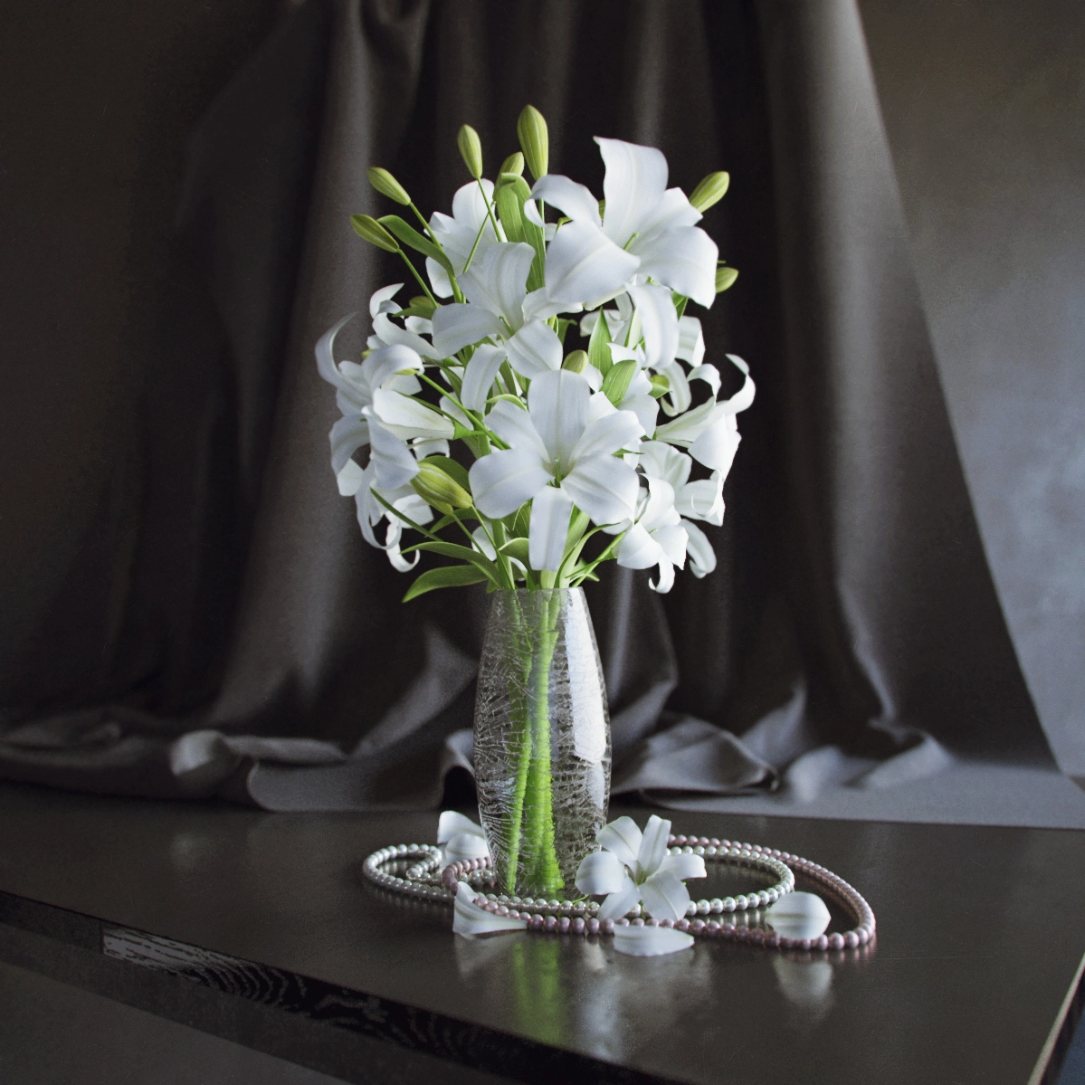 装满新鲜水果的水果篮和花卉花瓶3D模型